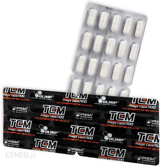 POTĘŻNA DAWKA FARMACEUTYCZNEJ JAKOŚCI JABŁACZNU KREATYNY!!!AŻ 1100 MG JABŁCZANU KREATYNY W 1 KAPSUŁCE MEGA CAPS !!!TCM Mega Caps® zawiera 100% jabłczanu kreatyny (Tricreatine malate), molekuły która sprzęga cząsteczkę kreatyny z cząsteczką jabłczanu. Jabłaczan jako metabolit glukozy należący do grupy hydroksykwasów karboksylowych stymuluje insulinę i znakomicie wspomaga transport oraz pobieranie kreatyny przez komórki mięśniowe zarówno w metabolizmie spoczynkowym jak i wysiłkowym.Jabłczan kreatyny jest formą kreatyny, lepiej rozpuszczalną i przyswajalną, dłużej magazynowaną i efektywniej przemienianą w aktywną fosfokreatynę, niż tradycyjne suplementy kreatynowe. Konsumpcja kreatyny przyczynia się do zwiększenia wydolności fizycznej podczas krótkotrwałych, powtarzających się ćwiczeń o dużej intensywności (efekt dotyczy konsumpcji 3 g dziennie).Jabłczan keratyny TCM Mega Caps® dużo lepiej rozpuszcza się w wodzie od tradycyjnego monohydratu, a rozpuszczalność ma ogromne znaczenie dla procesu wchłaniania, gdyż organizm pobiera z przewodu pokarmowego tylko to, co pozostaje w stanie rozpuszczonym.UWAGA! TCM Mega Caps® jest prawnie zastrzeżonym znakiem towarowym dla produktów opartych na oryginalnym jabłczanie kreatyny stosowanym w produkcji przez OLIMP Labs. Numer prawa wyłącznego #189038MEGA CAPS®/MEGA CAPSULES® – TO WŁASNOŚĆ PRZEMYSŁOWA FIRMY OLIMP LABORATORIES. TO MY BYLISMY PIERWSI!Oznaczenia “MEGA CAPS” i “MEGA CAPSULES” to znaki towarowe, które zostały zarejestrowane na rzecz firmy Olimp Laboratories w Urzędzie Patentowym RP jako pierwsze, odpowiednio od 2004 i 2006 roku. Dodatkowo słowny znak towarowy „MEGA CAPS” poddany został procedurze międzynarodowej w 26 krajach na całym świecie i do tej pory został zarejestrowany w 17 krajach. Również znaki towarowe słowno-graficzne MEGA CAPS®/MEGA CAPSULES® zostały przez nas zgłoszone do rejestracji w trybie międzynarodowym w wielu krajach, również poza Europą.MEGA CAPS®/MEGA CAPSULES® OLIMP- PIERWSZE, ORYGINALNE, JEDYNE!Składniki: 84,6% jabłczan kreatyny (tri-creatine malate), substancja wypełniająca – celuloza mikrokrystaliczna; substancja przeciwzbrylająca – sole magnezowe kwasów tłuszczowych; kapsułka (żelatyna, barwnik: E 171).Informacja żywieniowa 1 kapsułka 2 kapsułki 4 kapsułki 6 kapsułek Jabłczan kreatynyw tym kreatyna 1100 mg825 mg 2200 mg1650 mg 4400 mg3300 mg 6600 mg4950 mg120 kapsułek 156 g1 kapsułka 1300 mgPrzechowywać w suchych pomieszczeniach, w temperaturze pokojowej w szczelnie zamkniętych opakowaniach. Przechowywać w sposób niedostępny dla małych dzieci.TCM MEGA CAPS® Suplement diety zawierający jabłczan kreatyny w kapsułkach.Preparat uzupełniający dietę w jabłczan kreatyny (tri-creatine malate). Jabłczan kreatyny jest formą kreatyny, lepiej rozpuszczalną i przyswajalną, dłużej magazynowaną i efektywniej przemienianą w aktywną fosfokreatynę, niż tradycyjne suplementy kreatynowe. Konsumpcja kreatyny przyczynia się do zwiększenia wydolności fizycznej podczas krótkotrwałych, powtarzających się ćwiczeń o dużej intensywności (efekt dotyczy konsumpcji 3g dziennie). Przeznaczenie: TCM Mega Caps® przeznaczony jest dla osób dorosłych, aktywnych fizycznie i sportowców.Zalecana dzienna porcja: 3 kapsułki 2 razy dziennie przed śniadaniem, po treningu lub przed snem. Popijać dużą ilością wody. Nie należy przekraczać porcji zalecanej do spożycia w ciągu dnia. Suplement diety nie może być stosowany jako substytut zróżnicowanej diety. Zalecany jest zrównoważony sposób żywienia i zdrowy tryb życia.